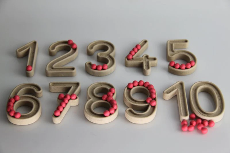 - Een eerste hoekje was eentje waarbij de kleuters cijfers moesten opvullen met gekleurde chickpeas. De cijfers zijn van Houten Onderwijsmateriaal en de gekleurde kikkererwten waren van Invitation to Imagine. De kleuters gingen aan de slag met pincetten om de cijfers op te vullen.