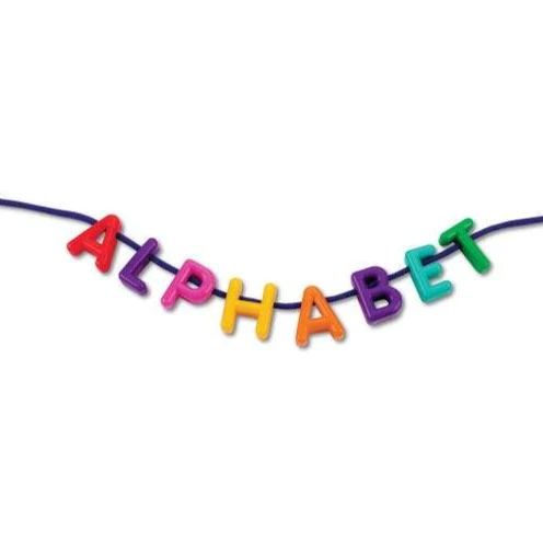 - In de letterhoek konden de kleuters aan de slag met het rijgen van alfabetparels. Hier maakten ze dan hun naam mee of die van een vriendje. Er waren ook geostix ter beschikking van EDX met opdrachtkaarten rond letters.