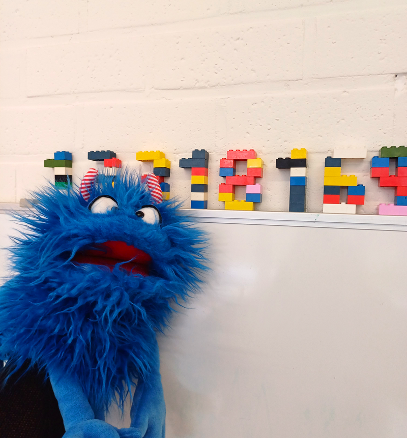 - Andere jaren krijgen we een letter- en cijfermonstertje op bezoek. Dit monster noemt "Alfred van het Alfabet, die ook graag letter fret." ;-).