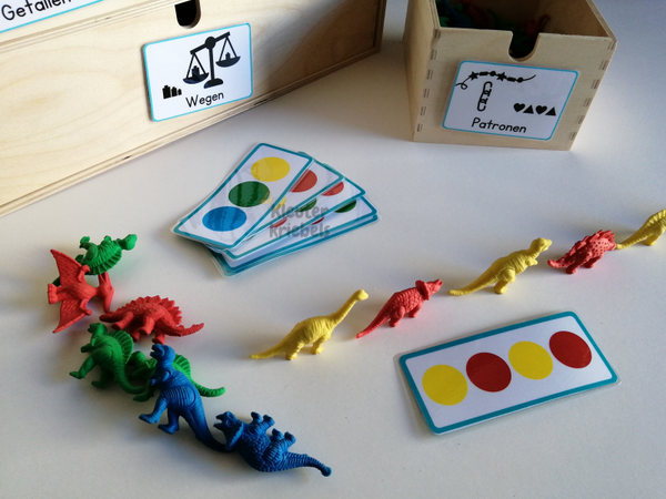 - Patronen: "De dinotrein" - Vorm patronen met verschillend gekleurde dino's.