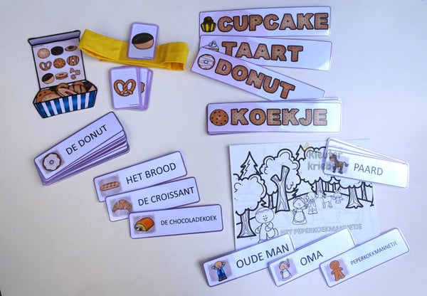 - Taal- en letterspel: Het verhaal van het peperkoekmannetje - schrijven van ontbrekende woorden in het verhaal