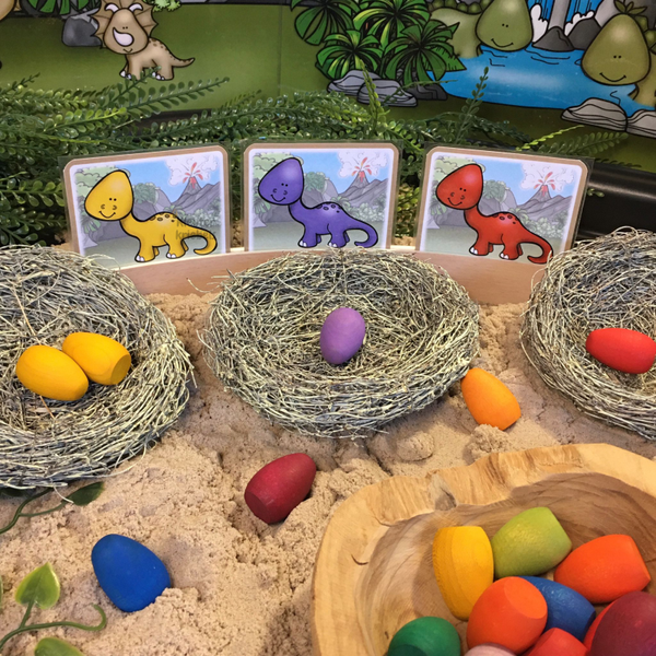 - Kleurenspel: Dino eieren (met differentiatie mogelijkheid rond tellen)